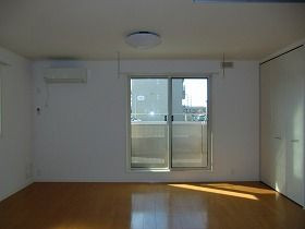 明るい白を使った6畳の洋室でエアコンが付いています。